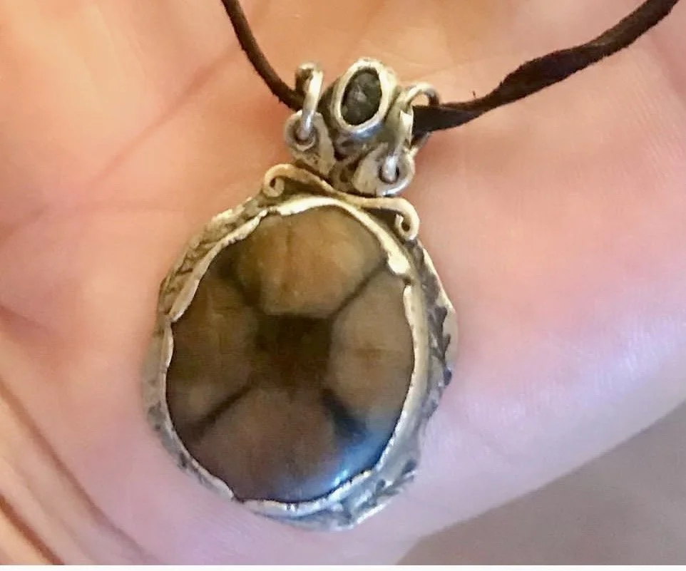 I created a piece with this lovely element and paired it with a rainbow moonstone that ‘accidentally’ became my personal piece. I cracked the moonstone in a few places, making it unsellable to clients. However, I have remade the piece three times upon request by interested customers.